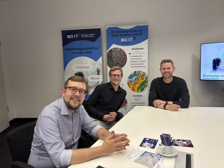 Im Gespräch mit BO-I-T-Geschäftsführer Jan Treffon und Peter-Christian Zinn standen aktuelle Entwicklungen an der Schnittstelle von Wissenschaft und Wirtschaft im Fokus – insbesondere mit Blick auf die Transformation der Wirtschaft und die Bedeutung kleiner und mittlerer Unternehmen (KMU) als Innovationstreiber.